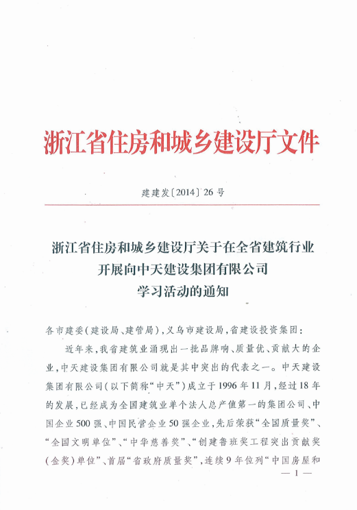 《浙江省住房和城乡建设厅关于在全省建筑行业开展向EBpay建设集团有限公司学习活动的通知》